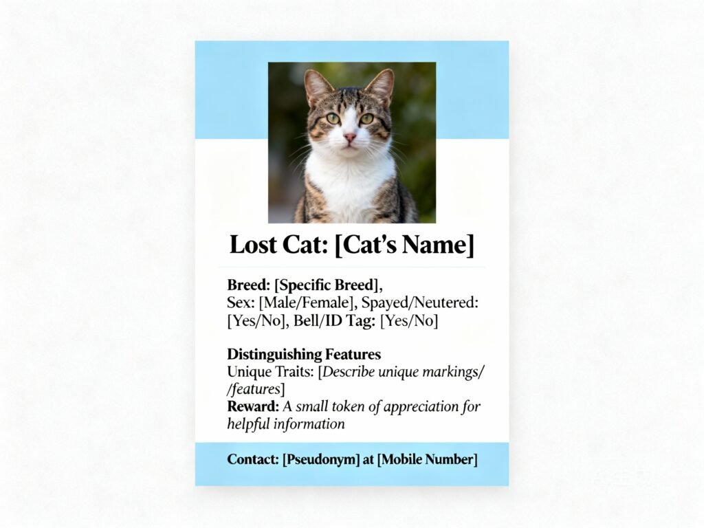 Search using keywords like “lost cat” along with your city or neighborhood, and submit your cat’s information online. Regularly checking these sites helps you stay up-to-date on any sightings or reports in your area.